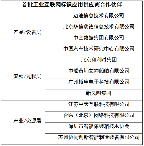 中国信通院发布首批工业互联网标识应用供应商合作伙伴