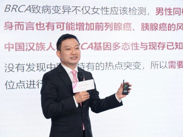 上海南方基因科技有限公司董事长金维荣:有10%左右乳腺癌显示明确的遗传倾向,BRCA是目前已知最主要的相关基因,我们需要通过提高广大女性朋友对它的认识,从而通过基因检测对乳腺癌进行早期筛查,从而实现真正意义上的及早预防、及早诊断、及早治疗。