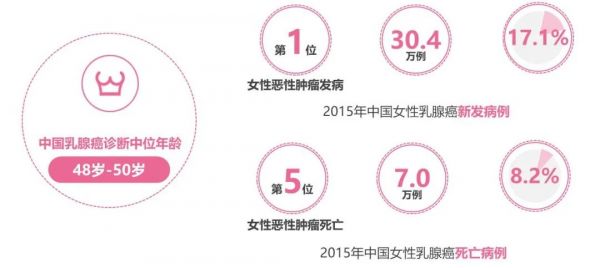 2019年,国家癌症中心发布的统计数据显示:2015年,中国女性乳腺癌新发病例数约为30.4万例,占女性恶性肿瘤新发病例的17.1%,在女性恶性肿瘤中发病例数排名首位;2015年,中国女性乳腺癌死亡病例约7.0万例,占女性恶性肿瘤死亡病例的8.2%,在女性恶性肿瘤中死亡病例数排名第5位。乳腺癌是女性恶性肿瘤中首要的健康问题。此次发布的《2020年中国女性健康粉红报告》分析数据来源于2019年7月到2020年6月之间在爱康集团旗下体检中心参加乳腺检查的约230万成年女性,对促进女性乳腺健康管理具有重要的指导意义。