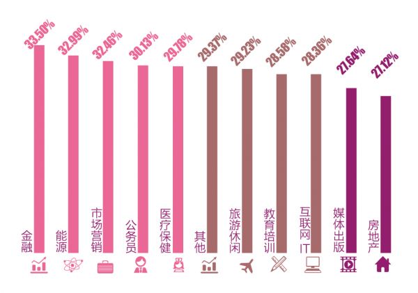 金融、能源、市场、公务员等行业女性乳腺彩超(除乳腺增生外)异常指标检出率较高,金融女性从业者异常检出率高达33.5%,能源女性从业者异性检出率高达32.99%。这些行业女性从事脑力劳动,文化程度高,社会经济地位也相对较高,生活节奏快,精神压力大,生育年龄相对较晚,同时受到基因突变及环境影响,可能更容易导致乳腺疾病的发生。