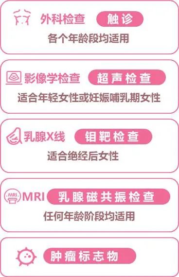 在触诊的基础上,选择超声检查、乳腺X线钼靶检查、MRI乳腺磁共振检查、肿瘤标志物等进行有针对性的检查。